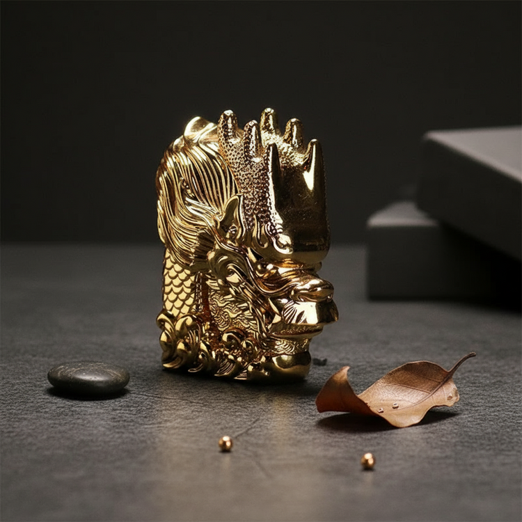 The Ancient Dragon is a meticulously crafted, golden-made classic-styled lighter, featuring an exquisite dragon head design.