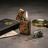 Adorned with intricately designed linked gears, this lighter captures the essence of vintage steampunk design, making it a unique and eye-catching addition to your collection.