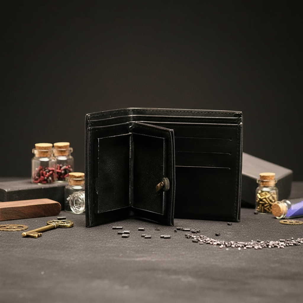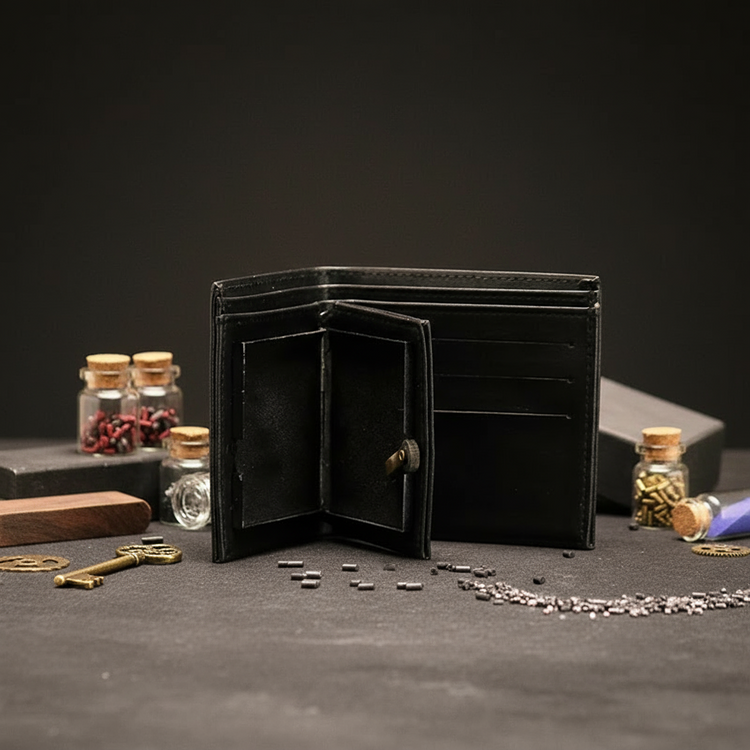 A seemingly ordinary accessory with an extraordinary surprise. Disguised as a wallet, it packs a punch with a striking flame.