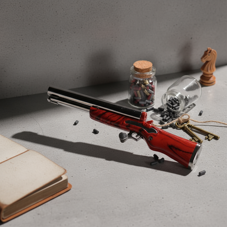 Modeled after a double-barrel shotgun, it packs a dual-flame punch. Simply pull the trigger to unleash a burst of fire and light up with style.